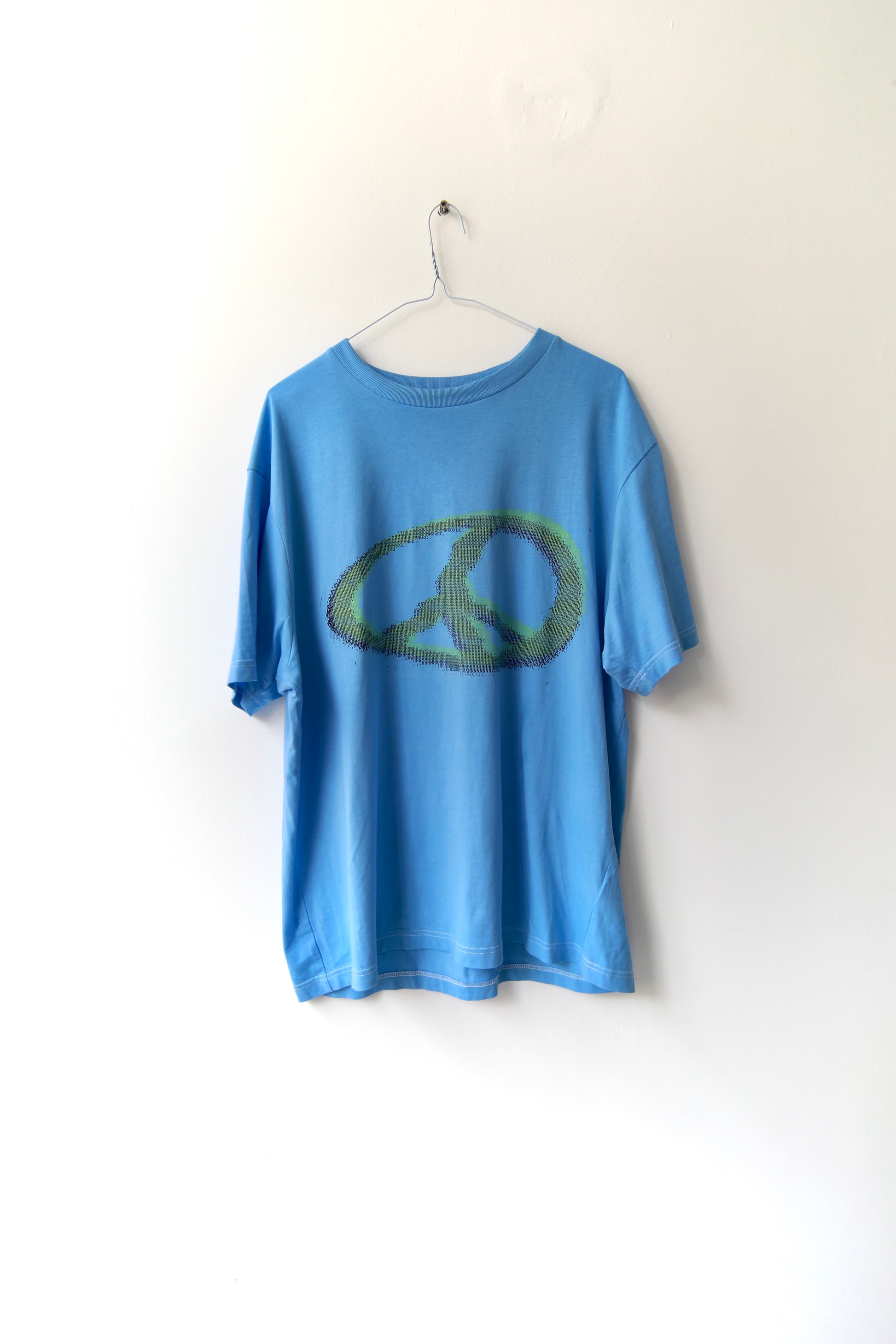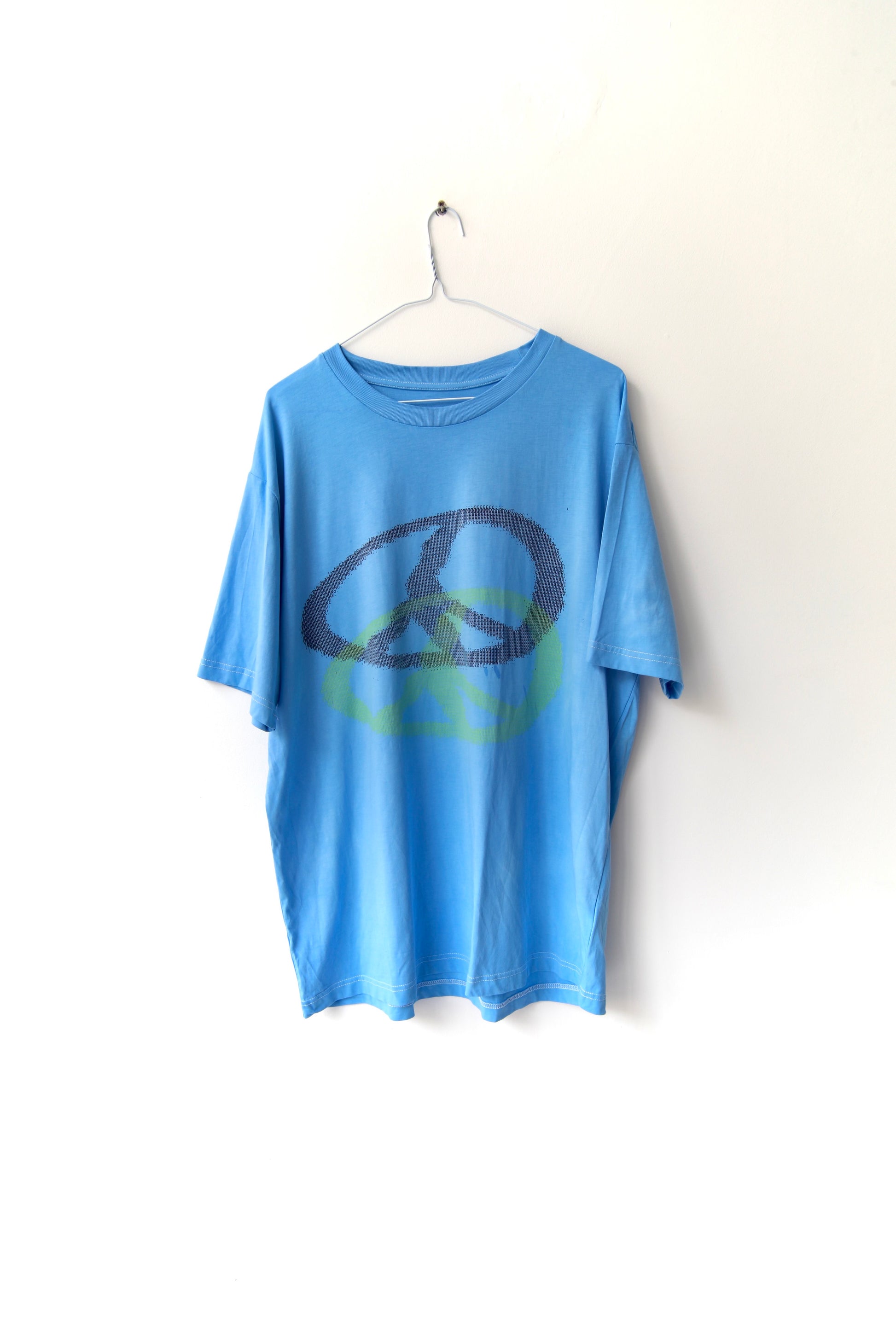 Each shirt has been screen printed by hand and dyed blue at our studio. This means that every single shirt is unique by way of its colour and print.