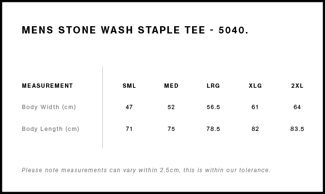 grey 2025 setlist tee printed on "as colour staple stone wash tee" featuring